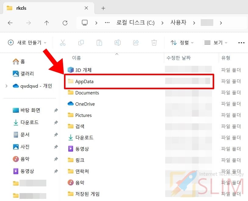6. 숨겨져있던 AppData 폴더를 확인하고 누릅니다.