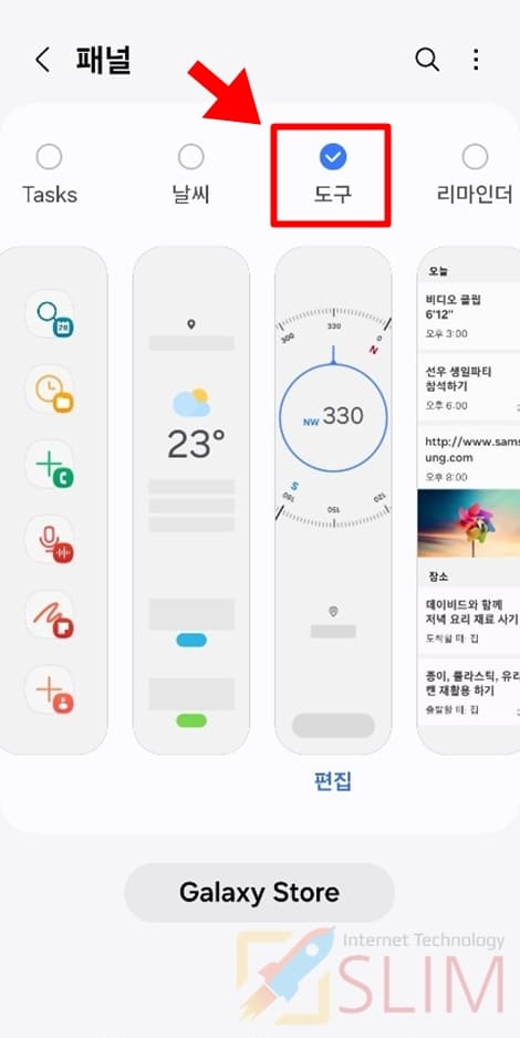 7. 스마트폰 화면 측면에 생긴 엣지 패널을 안쪽으로 끌어서 실행합니다.