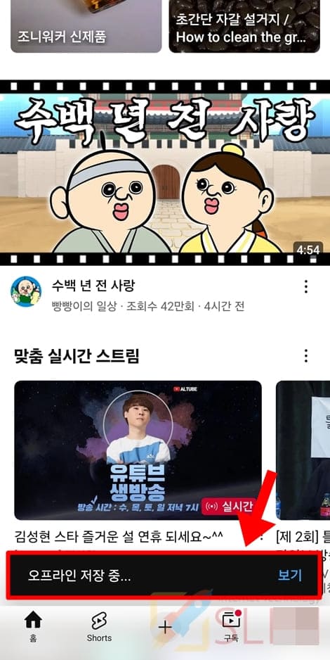 6. 선택한 유튜브 콘텐츠가 오프라인 저장됩니다.