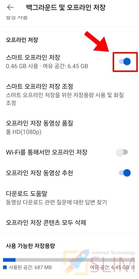 4. 스마트 오프라인 저장 기능을 활성화합니다.