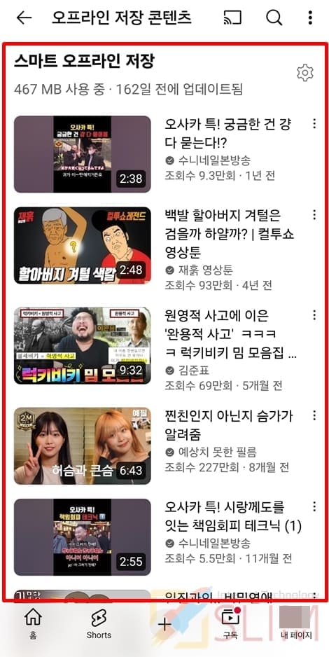 4. 오프라인 저장된 유튜브 동영상을 모두 확인할 수 있습니다.