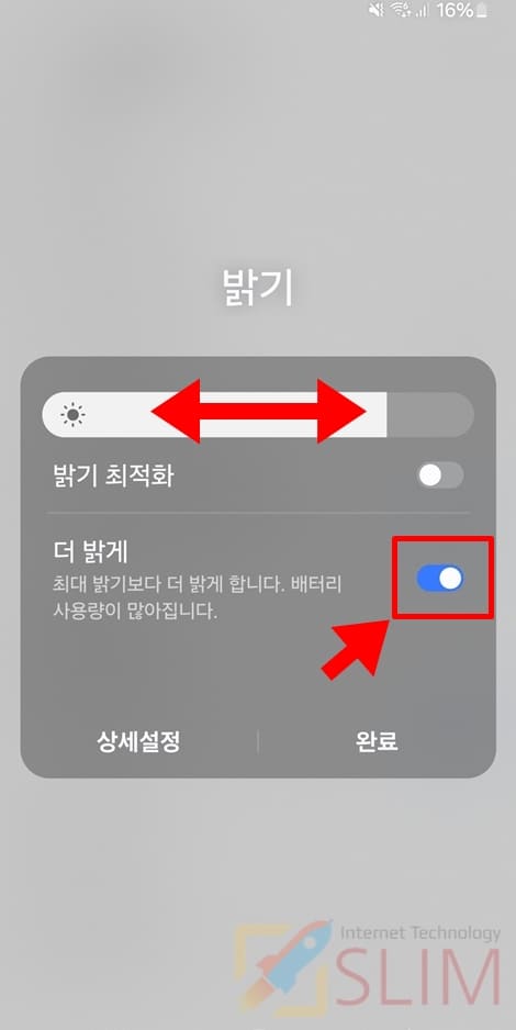 4. 수동으로 토글을 움직여 밝기를 조절합니다.