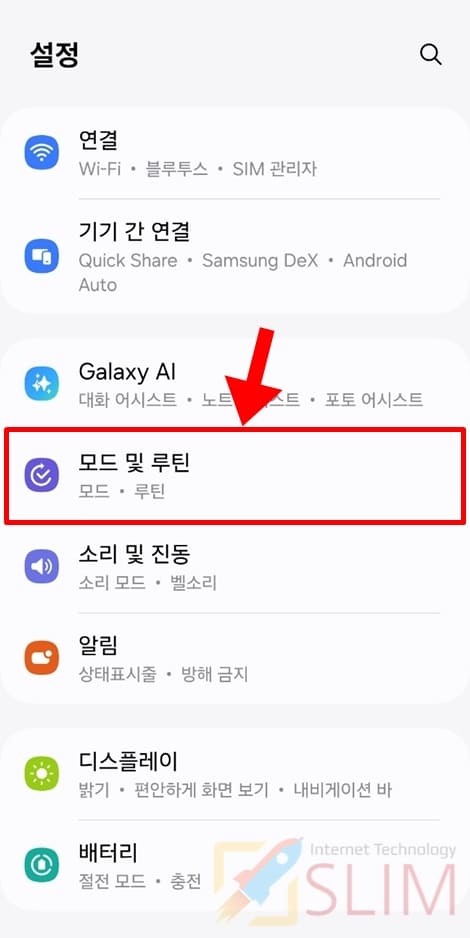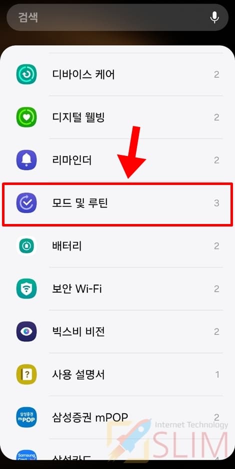 2. 모드 및 루틴을 클릭합니다.