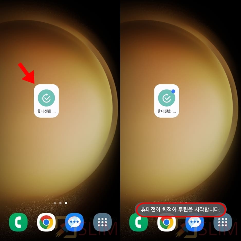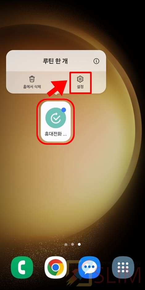 1. 만들어진 갤럭시 설정 바로가기 아이콘을 길게 누릅니다.