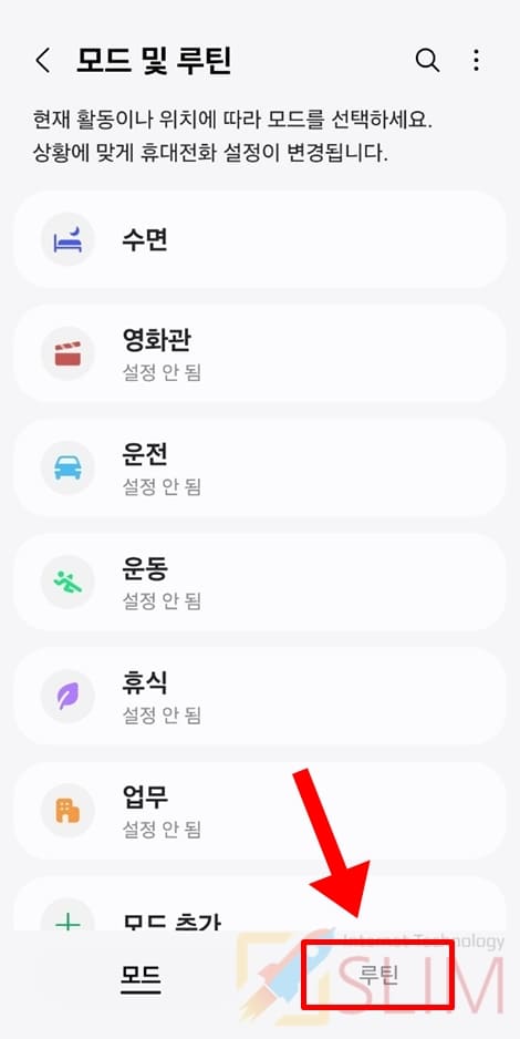 16. 모드 및 루틴을 클릭합니다.