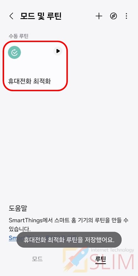 이제 홈 화면에 표시된 루틴을 클릭하면 내가 설정한 설정 바로가기 메뉴 및 기능이 바로 실행되게 됩니다.