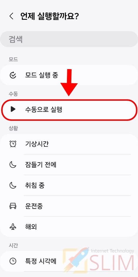 6. 수동으로 실행을 선택합니다.