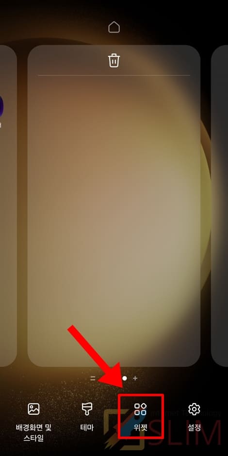 15. 하단 메뉴에서 위젯을 선택합니다.