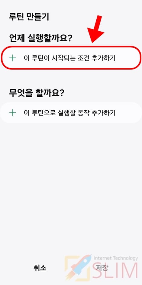 5. 이 루틴이 시작되는 조건 추가하기를 클릭합니다.