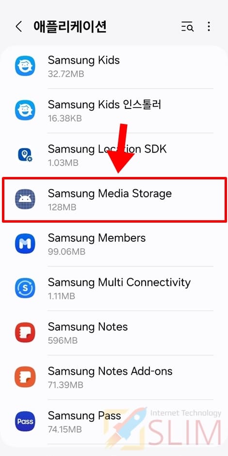 5. 앱 목록에서 Samsung Media Storage를 찾아 클릭합니다.