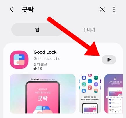 2. 굿락을 검색한 후 Good Lock 앱을 다운로드받고 실행합니다.