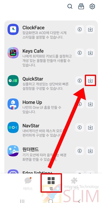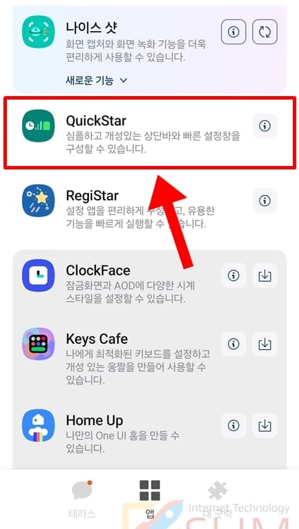 3. 하단 앱 > QuickStar을 찾아서 다운로드받습니다.