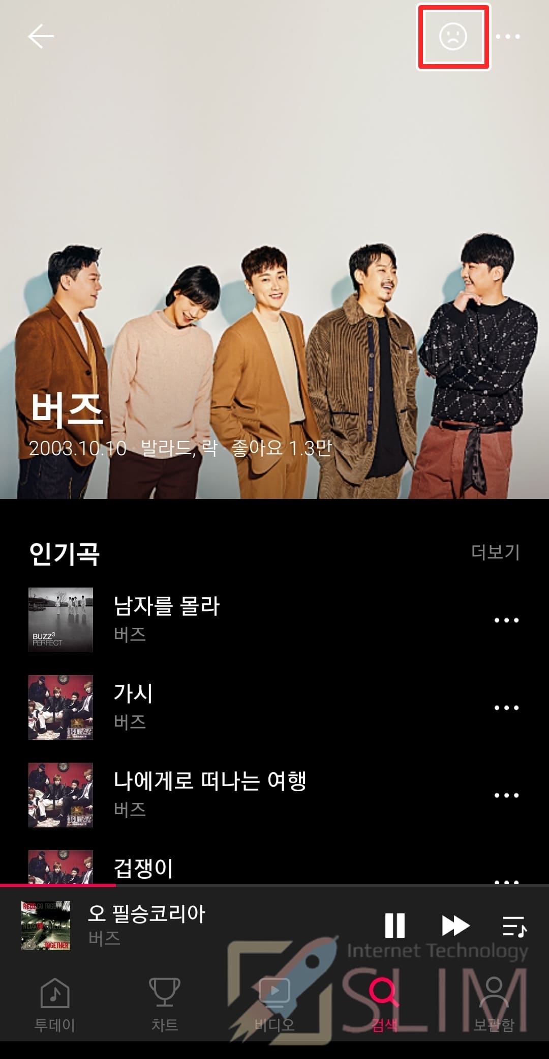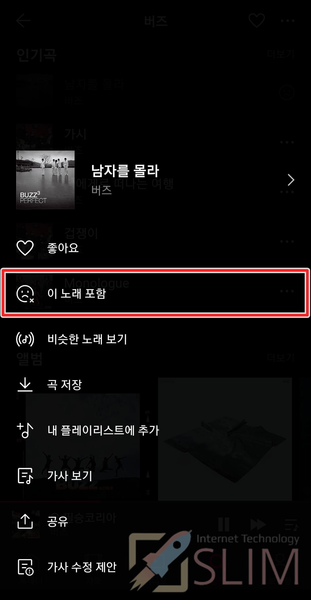 1. 바이브 앱에서 내가 차단하고 싶은 노래를 찾습니다.