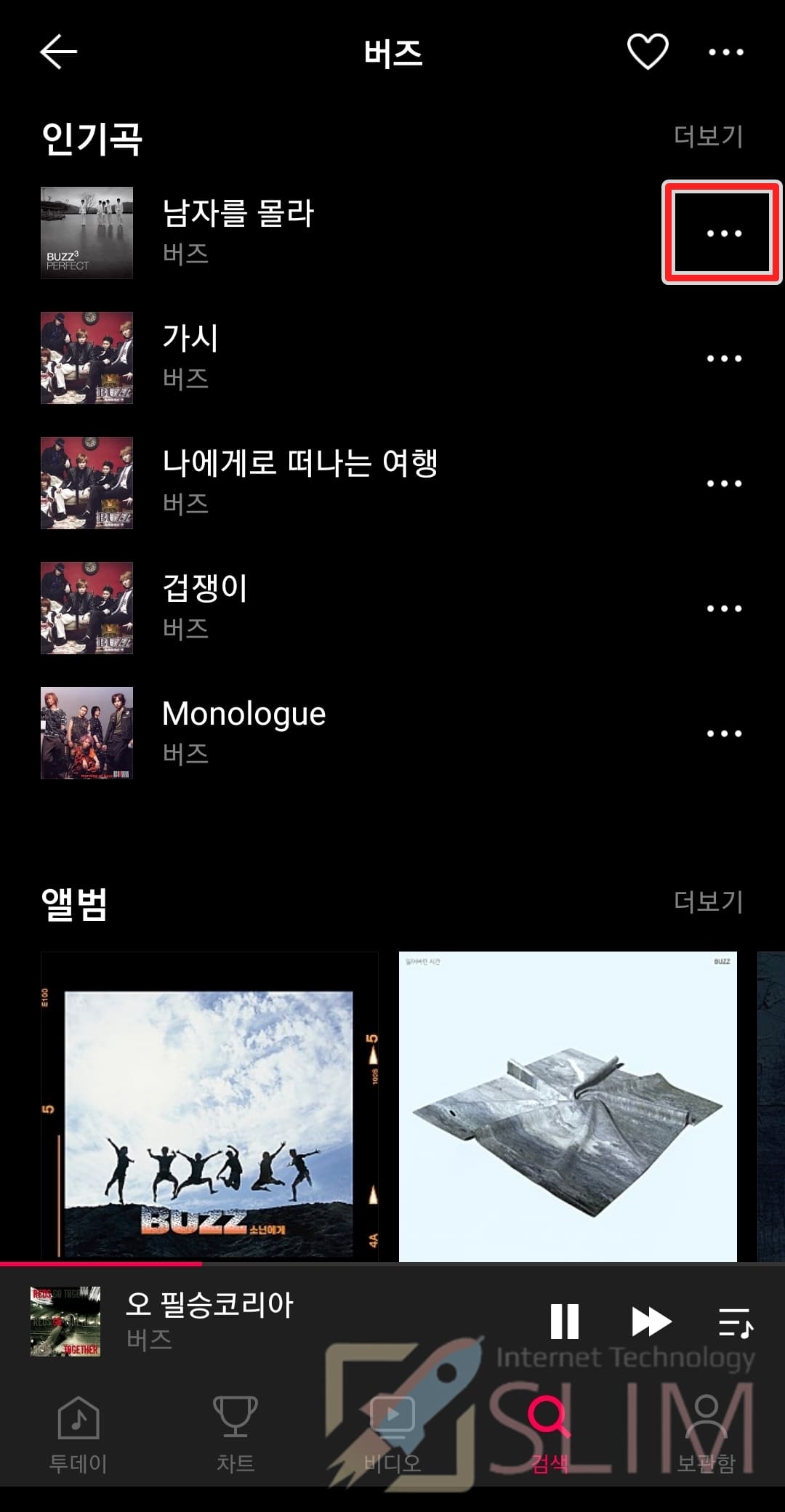 2. 곡의 오른쪽 더보기 버튼을 클릭합니다.