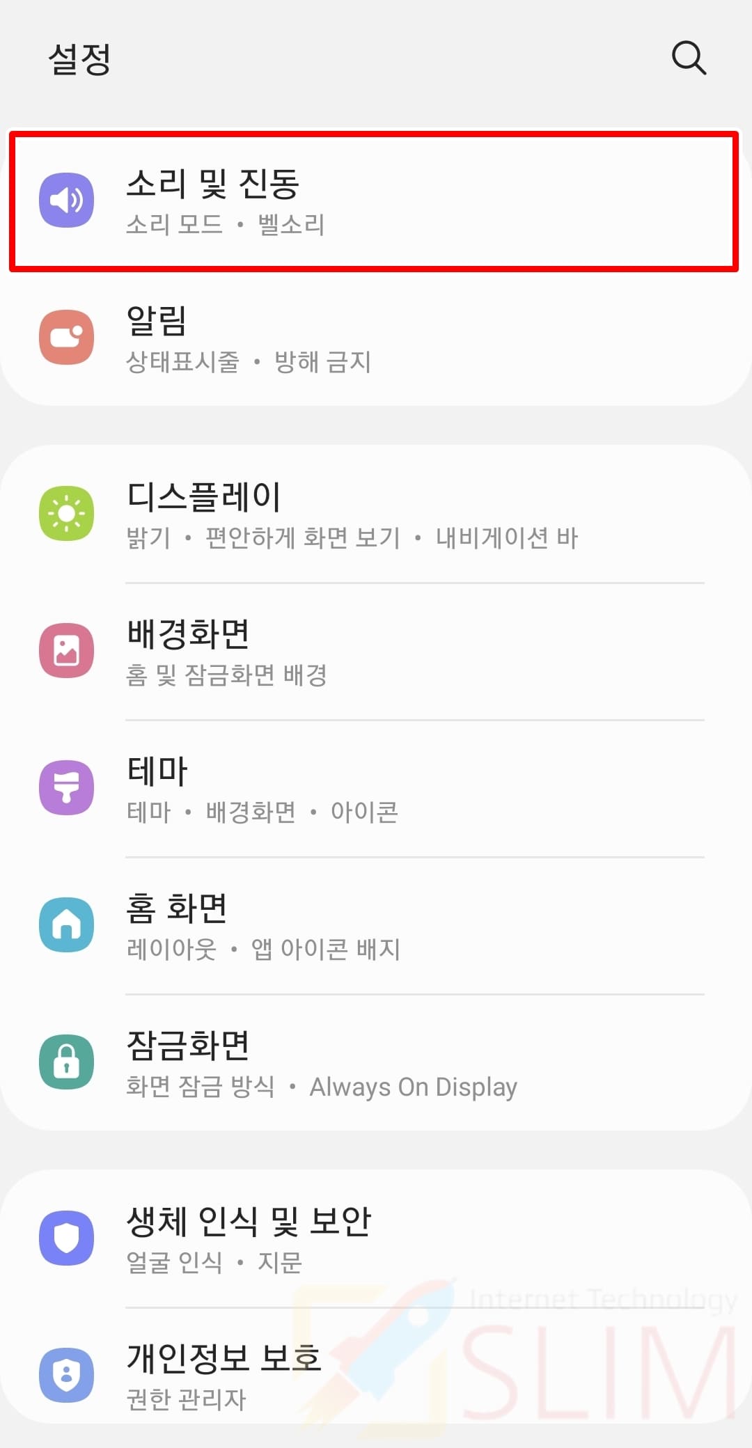 1. 갤럭시 설정 앱에서 소리 및 진동을 누릅니다.