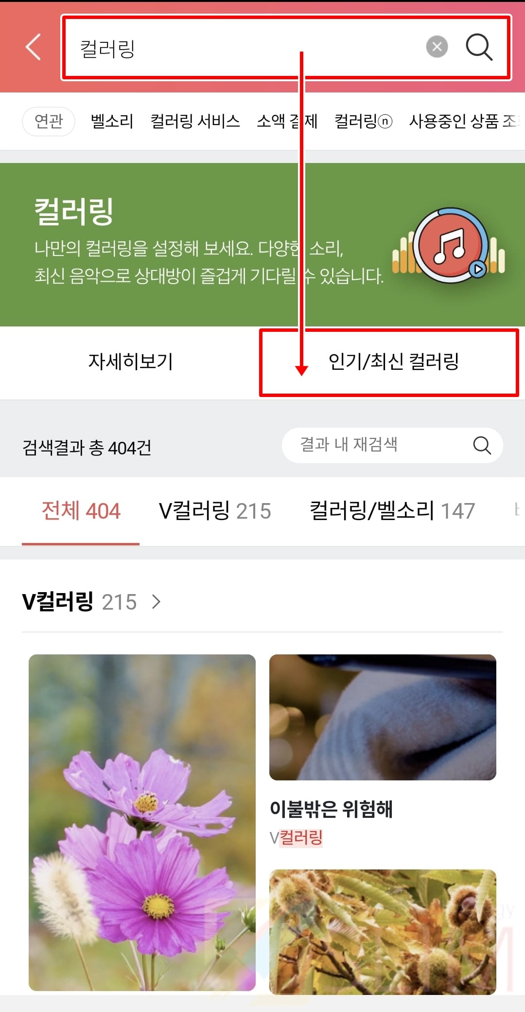 제가 이용하고 있는 스마트폰 통신사인 SKT에서는 유료 부가서비스로 컬러링을 제공하고 있고 이용자는 자유롭게 원하는 곡으로 변경하거나 내 컬러링을 들어서 확인할 수 있습니다. SKT 컬러링 설정시 주의하실 것은 컬러링 서비스 가입시 월 990원이 핸드폰요금에 추가되며, 내가 설정하는 곡에 따라서 이용료가 추가로 부과된다는 것입니다. 참고로 최신곡들의 경우 대략 한달 이용료가 대략 2,000원 정도인데 이러한 최신곡을 설정할 경우 990+2,000원으로 3천원 정도가 컬러링을 사용하기 위한 매달 요금이라고 생각하시면 되겠습니다.