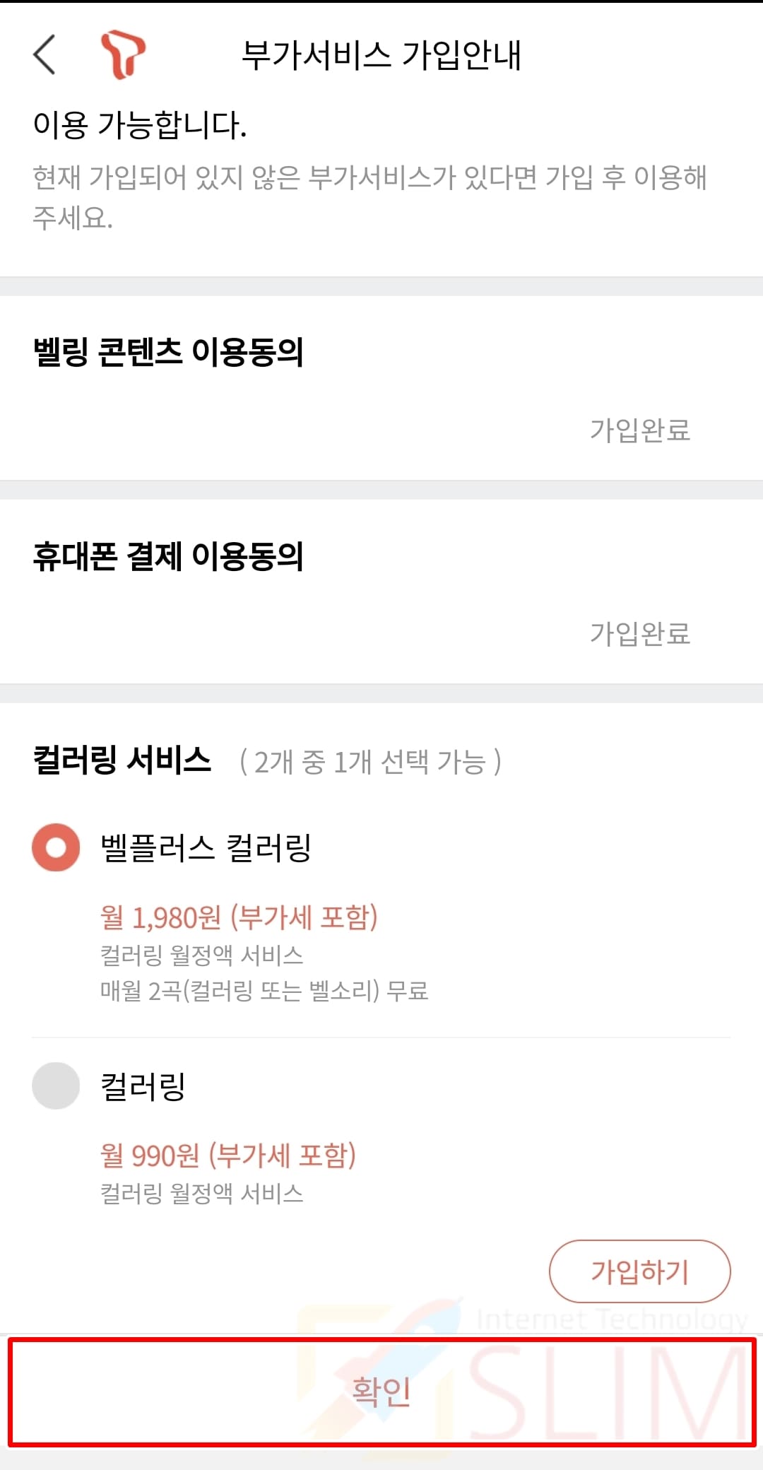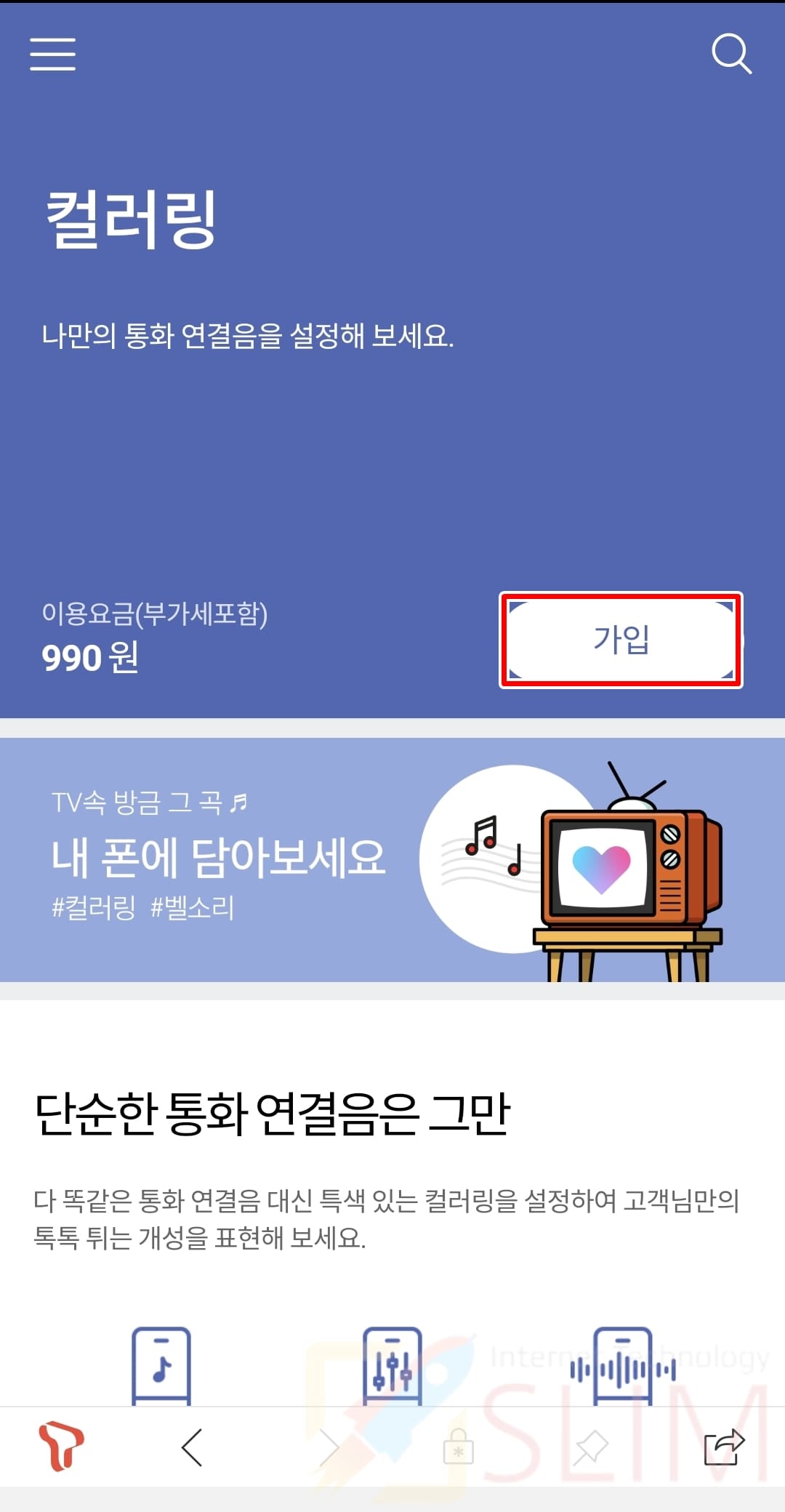 컬러링 부가서비스를 이용료는 990원입니다. 가입 후 이제 내가 원하는 노래로 컬러링을 설정해봅시다.