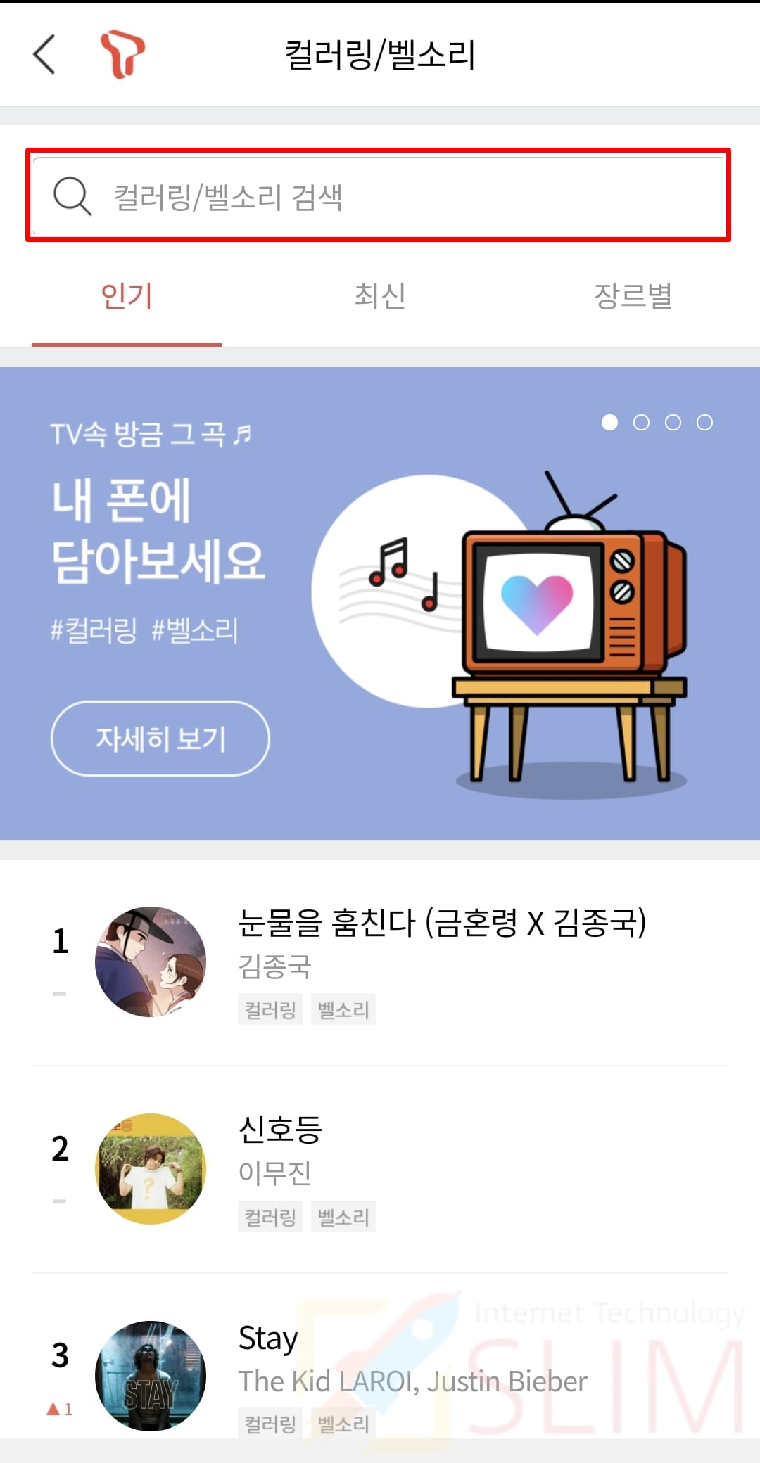 10. 설정하고 싶은 노래를 검색해서 찾은 후 클릭합니다.