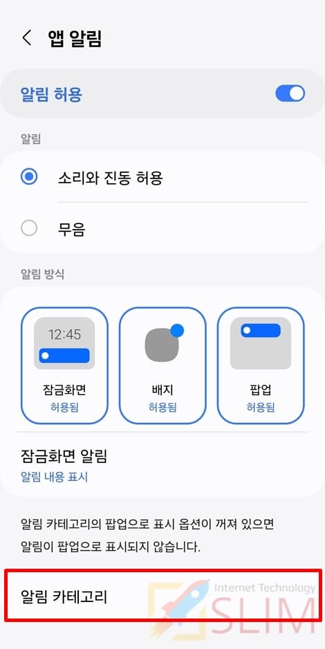 7. 하단에서 알림 카테고리를 클릭합니다.
